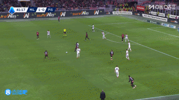 第7分钟,莱奥禁区前沿左路带球内切,晃开角度后起脚兜射破门,米兰1-0领先!↓
